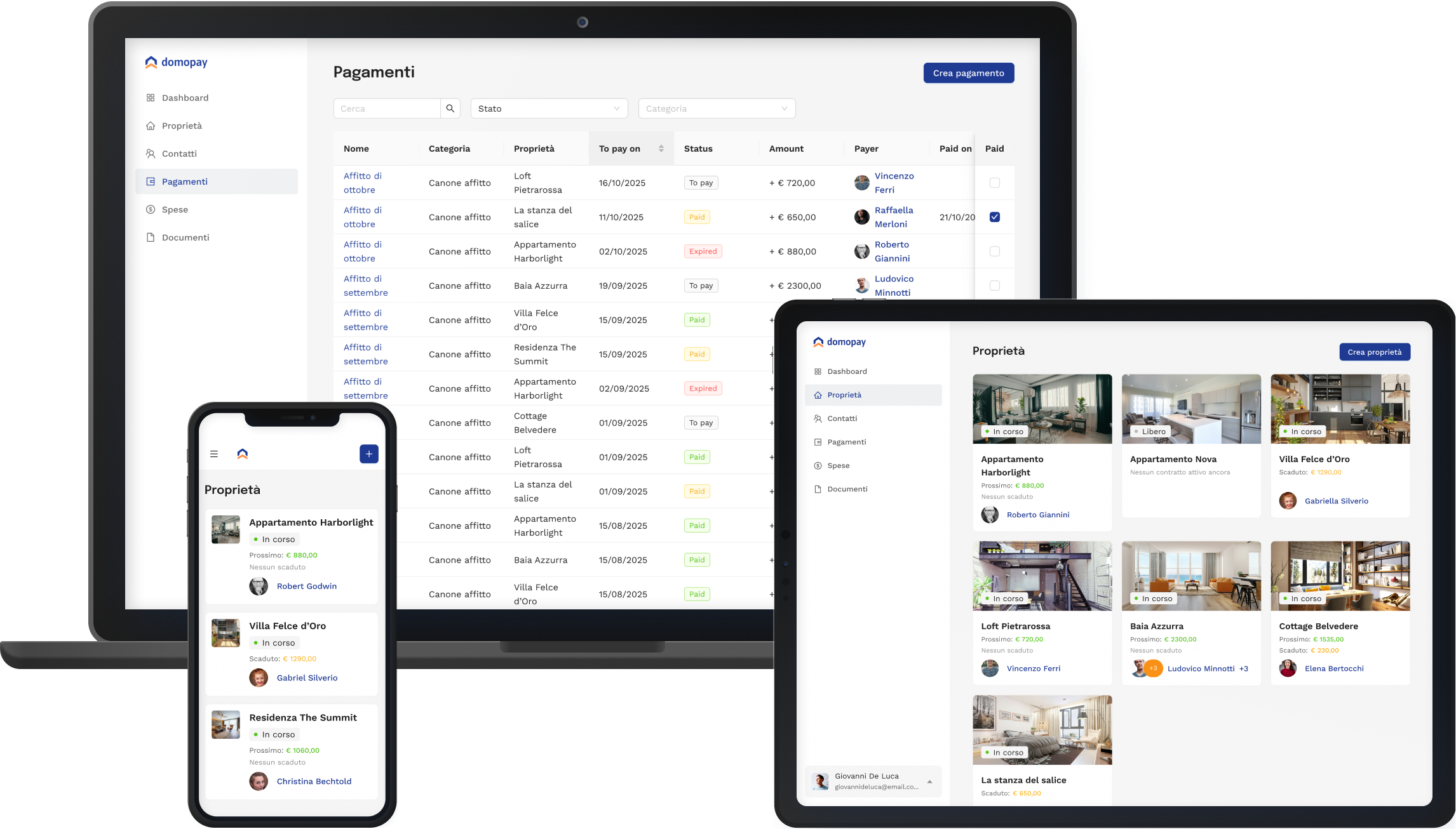 Domopay ti aiuta a ricevere puntualmente il pagamento dell’affitto e a migliorare l’esperienza dei tuoi inquilini su tutte le questioni importanti.
