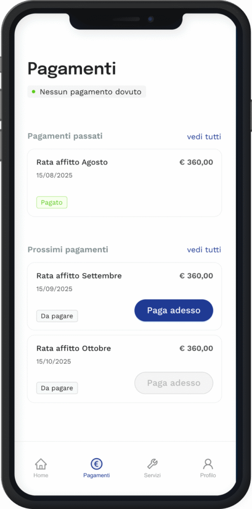 Quando scade il contratto? Qual è il periodo di preavviso per il rinnovo? Quali sono le regole del condominio? Tutti i documenti e le date chiave sono disponibili sulla tua app per un facile accesso.